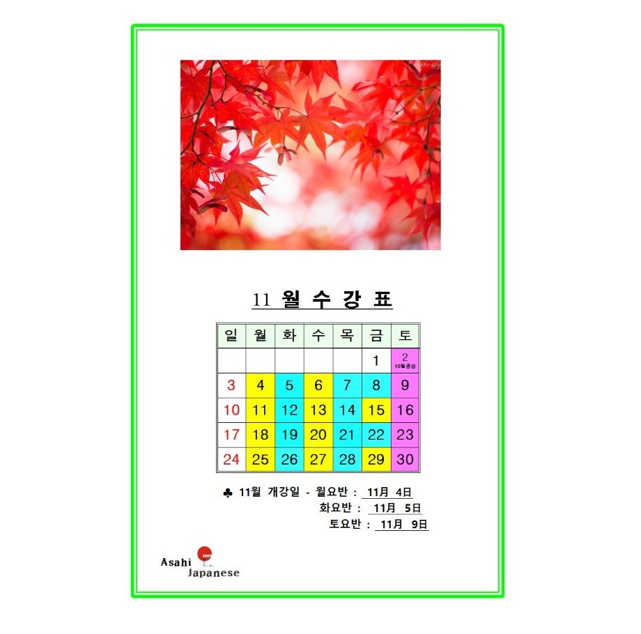 11월 수업일정표입니다~^^