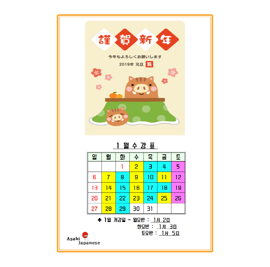 2019년 1월 수업일정표입니다^^