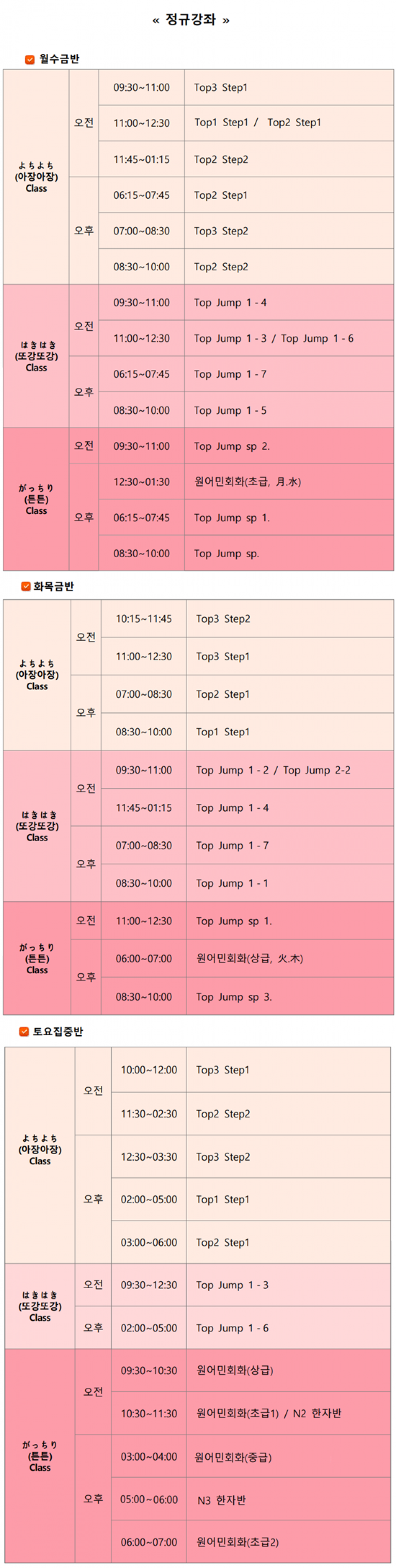 3월 정규수업 시간표입니다~^^