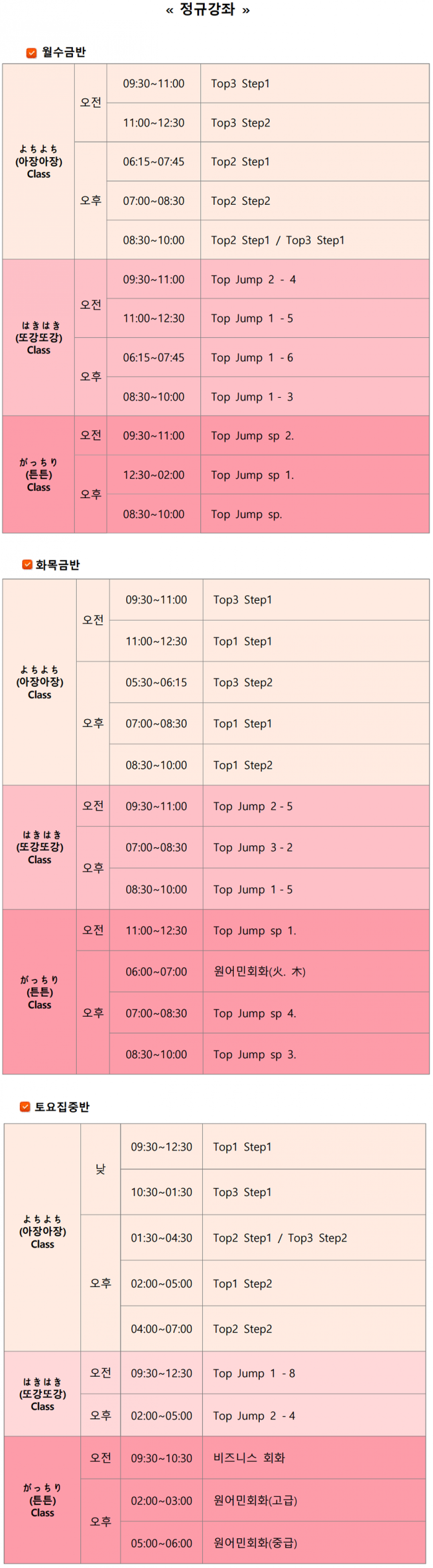 2월 정규수업 시간표입니다~^^