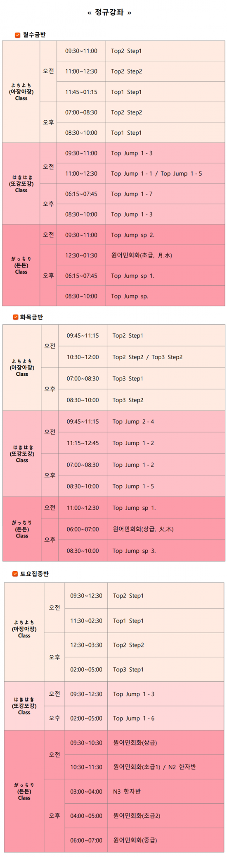 1월 정규수업 시간표입니다~^^