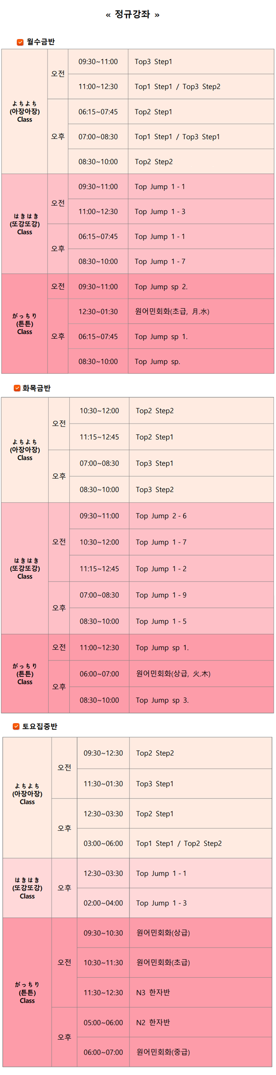 수업시간표(정규과정)