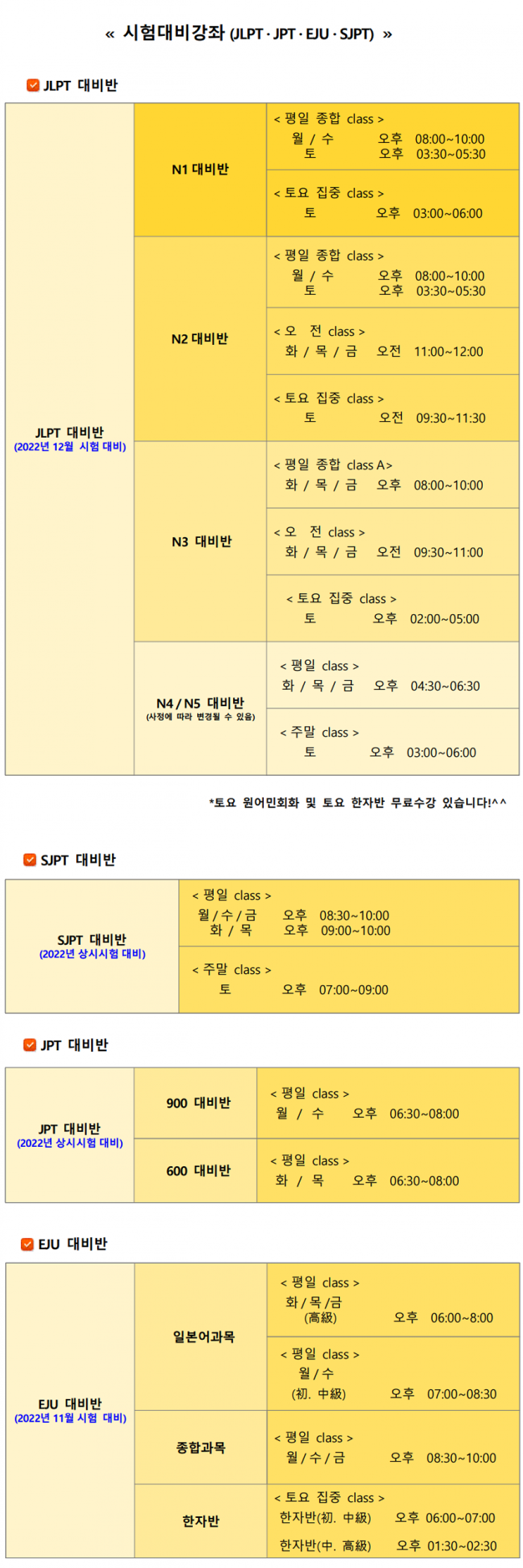 10월 시험대비반 시간표입니다~^^