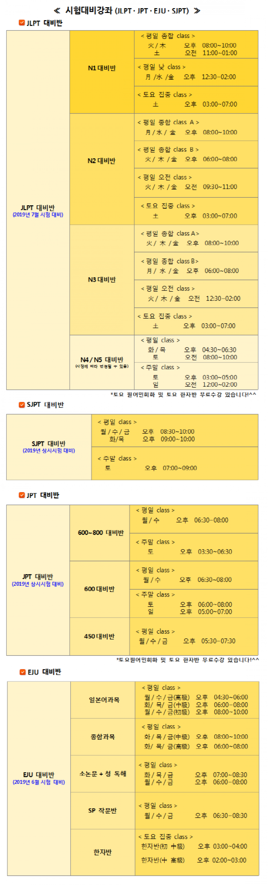 6월 시험대비반 시간표입니다~^^